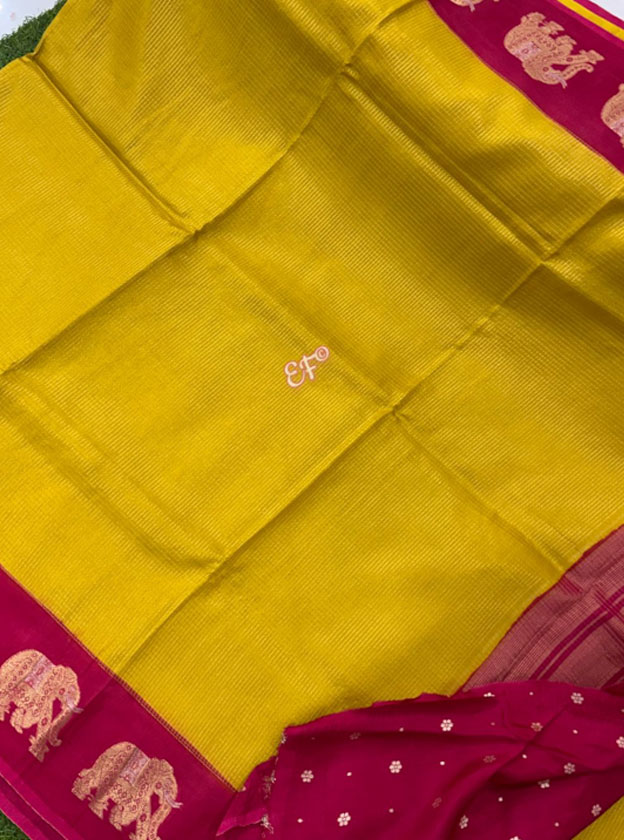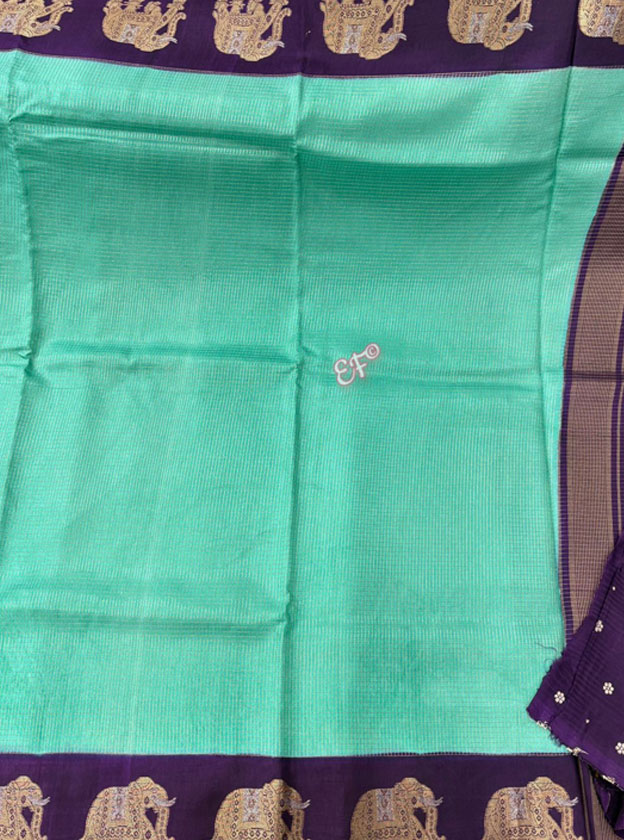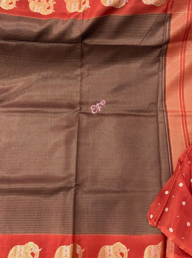 Sarees With Allover small Zari checks and contrast Elephant Buti weaving Borders Paired with Contrast Buti Blouse